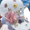 Knitted Flower Rhinestone Baseball Cap Women’s Handmade Applique Sunshade