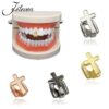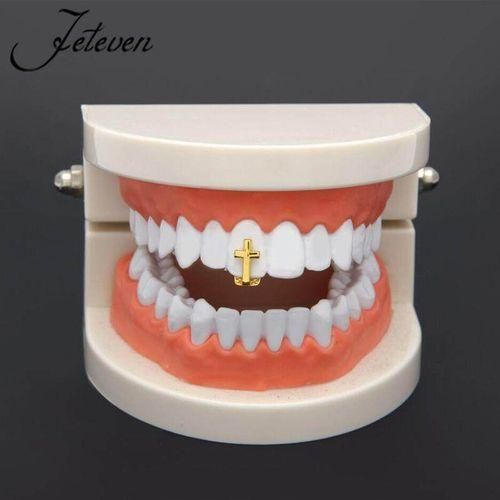 Elevate your style with our new Single Cross Gold & Silver Teeth Grillz, ideal for hip-hop enthusiasts and fashion-forward individuals. This set combines bold gold and sleek silver to create a standout accessory that adds a touch of bling to your smile. Perfect for adding a unique flair to any outfit, these grillz are crafted with precision for a comfortable fit and eye-catching shine. Designed for those who want to make a statement, they are available for direct purchase by hip-hop accessories manufacturers. Enhance your look with this trendy and versatile teeth grillz set.