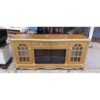 Royal gold TV stand with drawers and an electric fireplace; Your home is more than just a house; it’s the daily moments and experiences you share that make it uniquely yours. Celebrate being home with this stylish TV console and matching table. Crafted from high-grade materials, it features an electric fire display and ample storage for media and gaming devices. Designed with an antique royal finish and clean edges, this stand accommodates TVs up to 80 inches. The Artisan Collection drawers, doors, legs, and top details blend perfectly for a harmonious look, making it a perfect addition to your home decor.