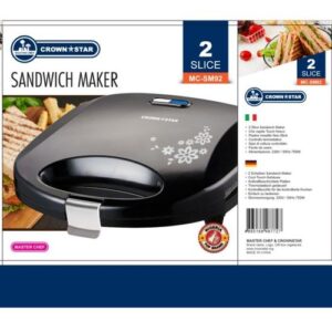 Product Details The Crown Star Sandwich Maker/Bread Toaster is designed for convenience and efficiency, featuring 750 watts of power for quick heating. Its non-stick heating plates ensure easy cleaning and even toasting, while the indicator lights help you know when the appliance is ready for use. The locking mechanism and cool-touch housing add to its safety and ease of use, making it a practical addition to any kitchen.