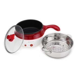Specification: - Color: Khaki, Wine Red, Light Green - Material: Ceramic Glaze + PP - Inner Material: Stainless Steel - Capacity: 1.8L - Power: 450W - Voltage: 220V 50Hz - Size: As shown - Adapter: China Standard (based on your country) Features: 1.8L capacity, steam grid, adjustable modes, fast heating, low noise, anti-dry burn, double-layer anti-scald. Non-stick stainless steel liner. Multi-function: fry, cook, steam, bake, stew. Compact and ergonomic for apartments or dorms. Includes: 1 Mini Electric Pot (no decorations) Notice: Measurements may vary slightly. Color may differ from photos due to lighting and monitor settings.