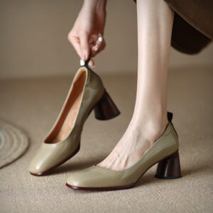 Product information: Pattern: solid color Lining material: pigskin Color: khaki, Blue Heel height: mid heel (3-5CM) Size: 34, 35, 36, 37, 38, 39 Sole craft: viscose shoes Applicable scenarios: Leisure Toe holder shape: round head Shoe Upper material: genuine leather Heel height: 5.5cm Size: Packing list: Shoes*1Pair Product Image: