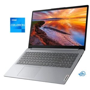 Lenovo IdeaPad is a 15.6-inch laptop with a 1920 x 1080 resolution screen and 4GB RAM for fast performance. It runs on an Intel Celeron processor with Lenovo turbo boost, operating Windows 10 Pro. Connectivity includes three USB ports and an HDMI output, with WiFi 802.11ac for high-speed router compatibility. It features a 0.3MP webcam for video conferencing and weighs 3.7 lbs, measuring 15" wide by 9.9" deep by 1" high. The antiglare display has thin bezels, enhanced by Dolby Audio technology, and utilizes Intel HD Graphics 810 for integrated GPU performance.