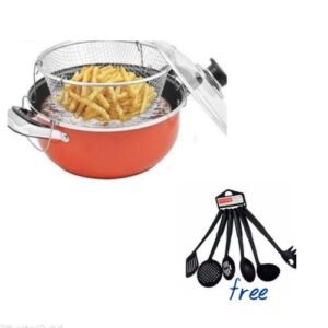 This 3-in-1 cooking set combines frying, steaming, and boiling in one compact pot. It includes a 5-pint pan, removable basket, heat-resistant lid, and free non-stick spoons.