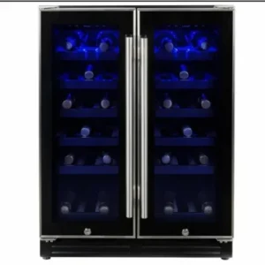 Split the cooler into red & white zones, or fill with one Fit 36 (75cl) bottles Show off your collection with blue LED lighting Protect your wine from the sunlight with the UV filte height 80cm depth 60cm 220v